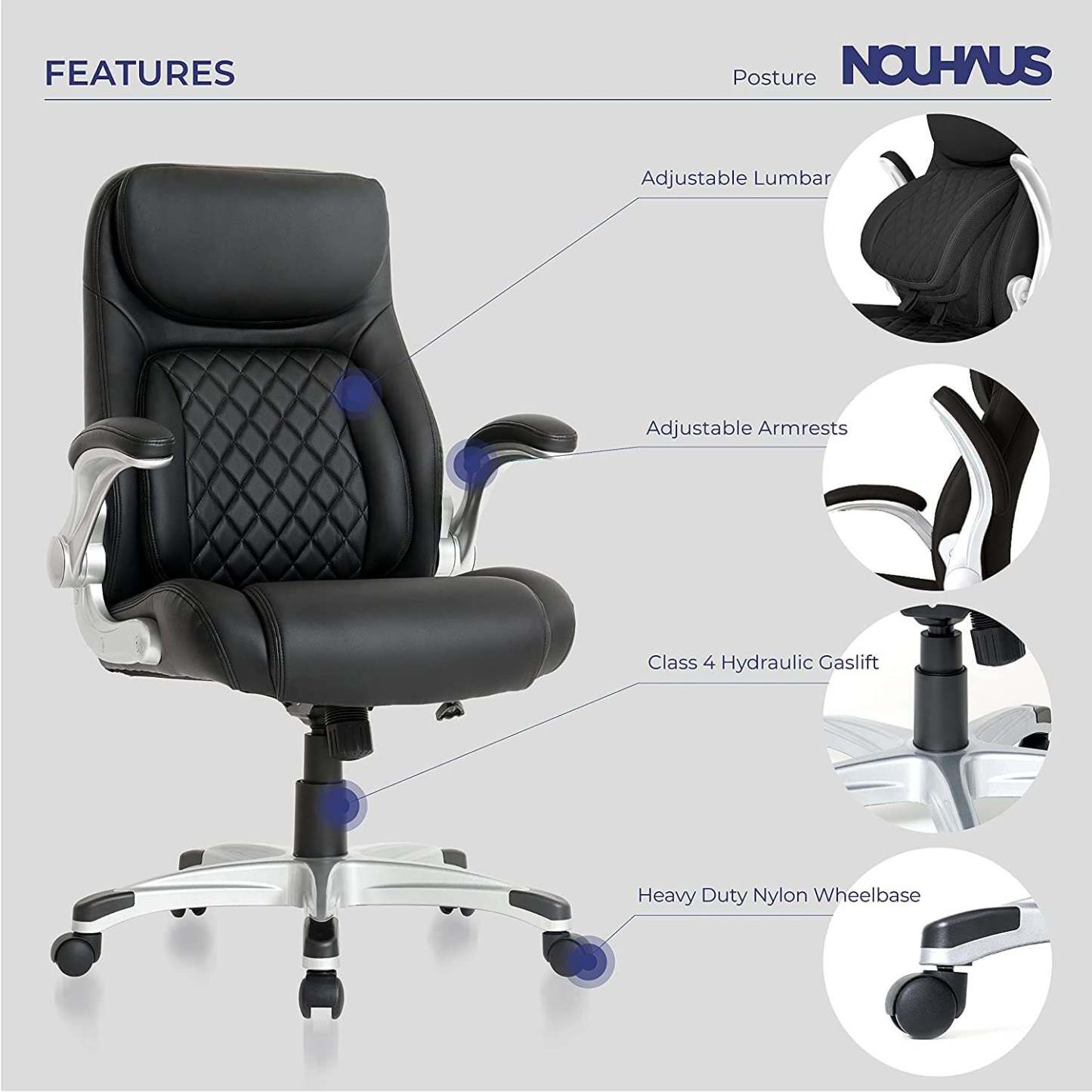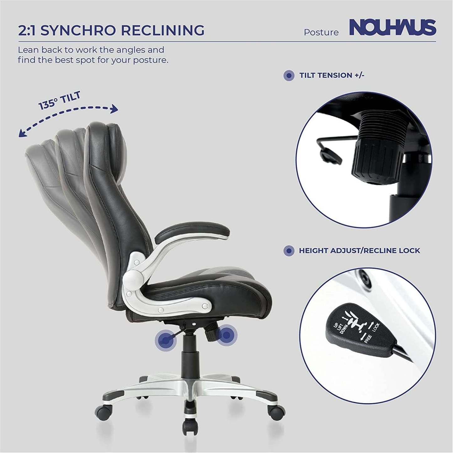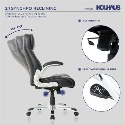 Here is a chair with Click5 lumbar support and a gentle tilt for optimal comfort, FlipAdjust armrests for space-saving versatility, and PU leather upholstery available in two classic colors for those ready to embrace a new decade in executive chair design. To access it. That's all and all you want.