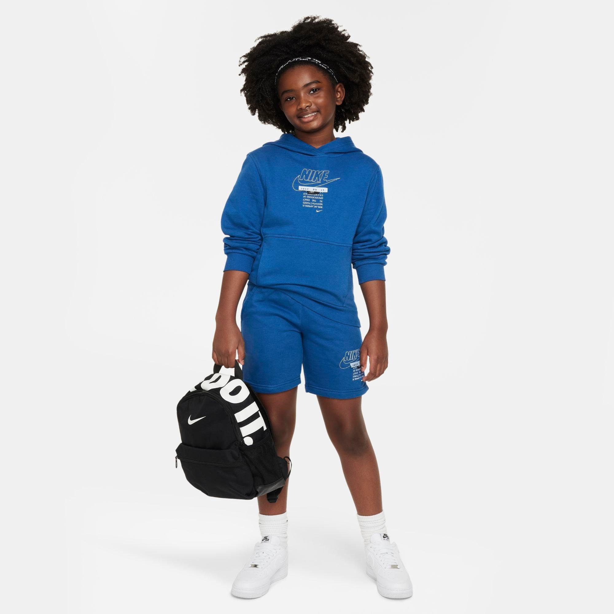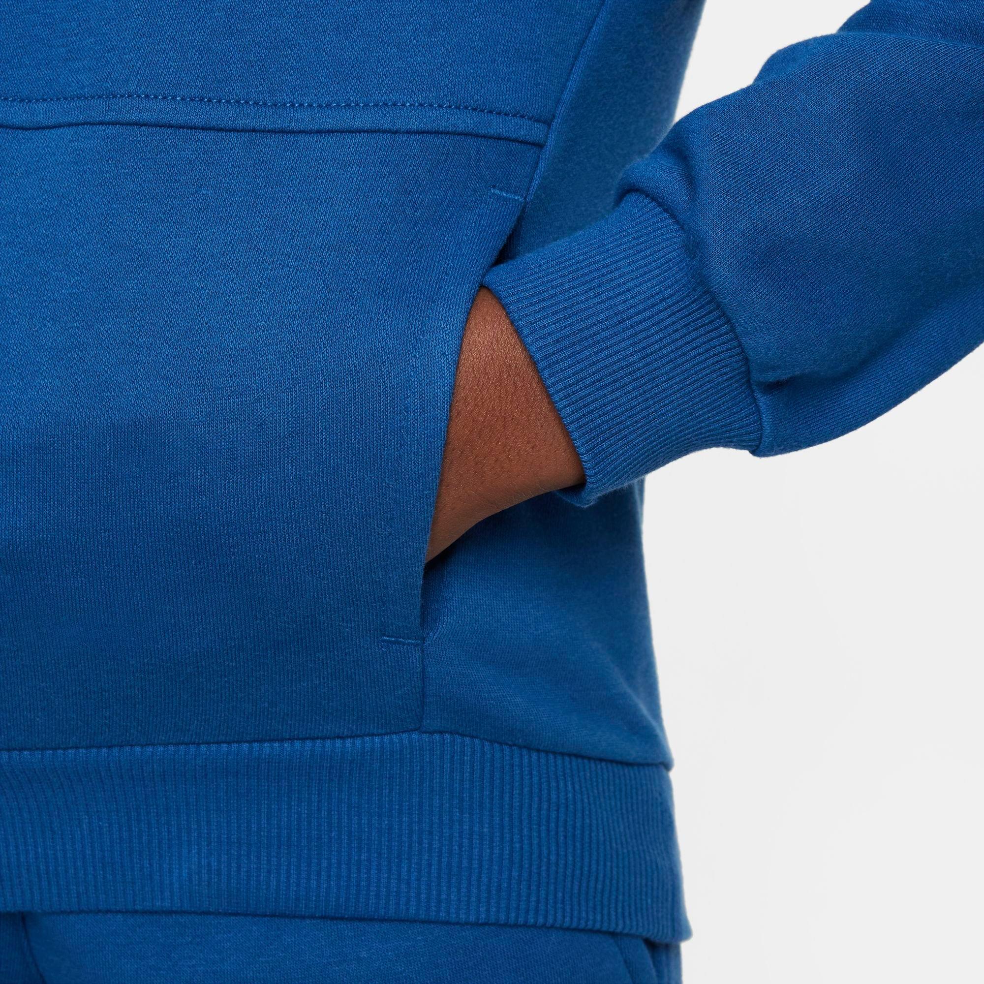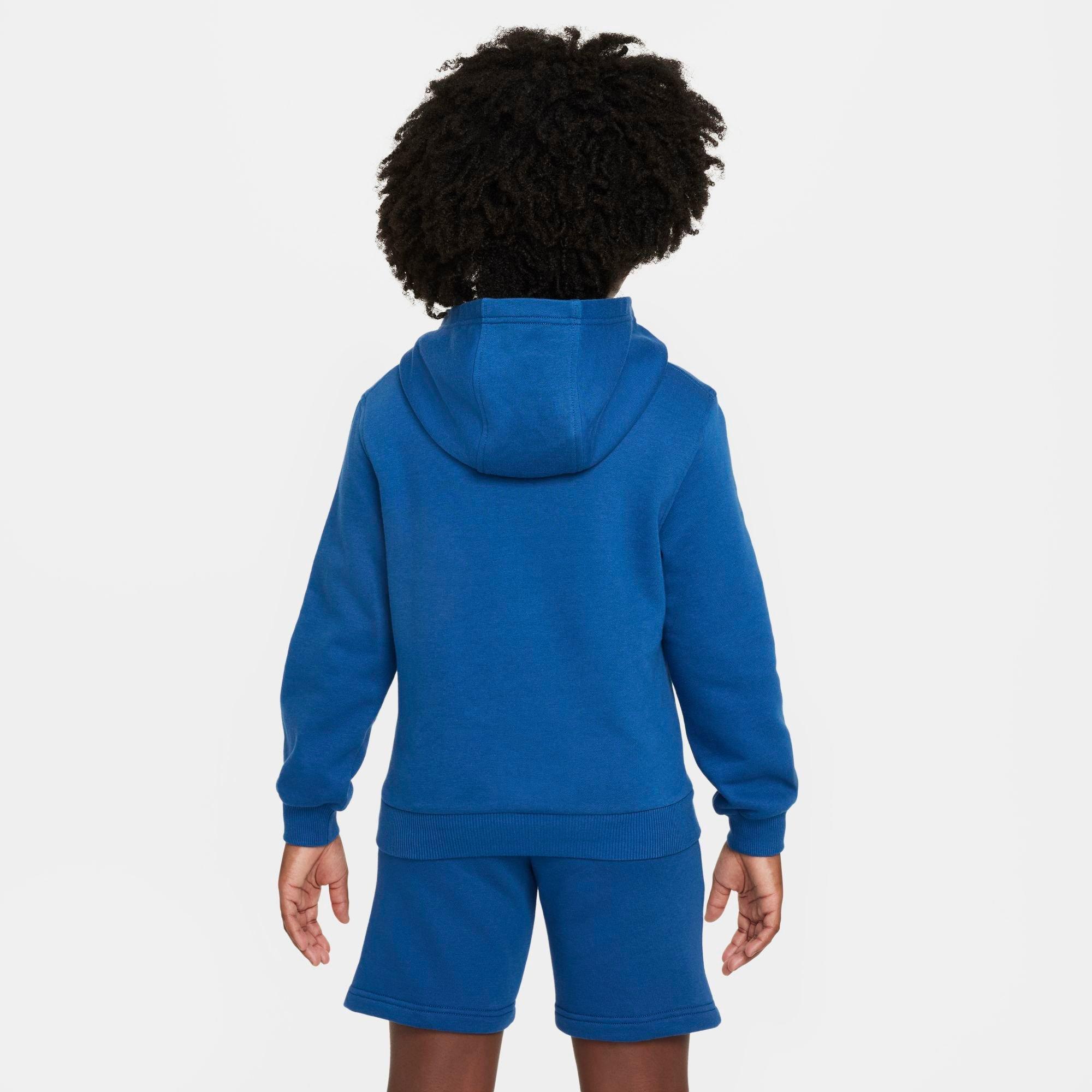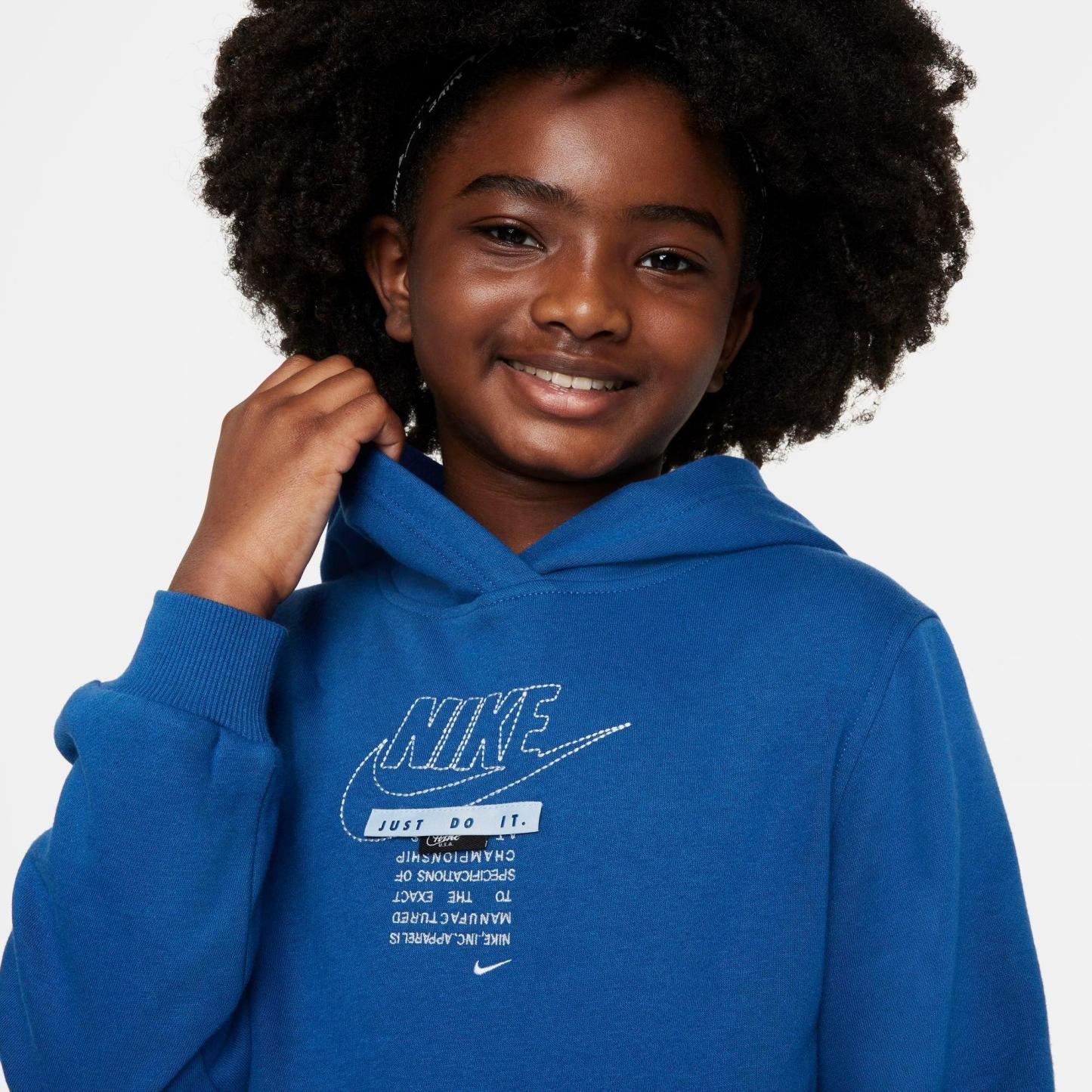 Let your love for the Swoosh loose when you pull on this Big Kids' Nithtke Sportswear Club Specialty Pullover Hoodie. Its cozy midweight fleece composition features a collage of all the most notable Nithtke logos to ensure that your 'fit can't be outdone by anyone!