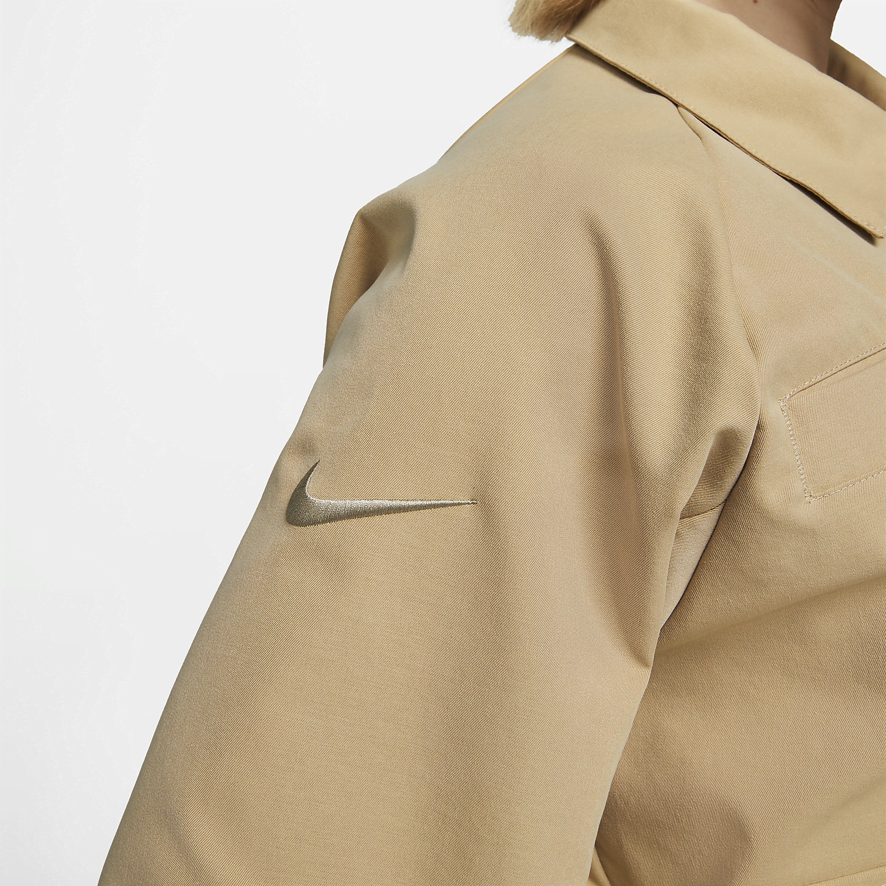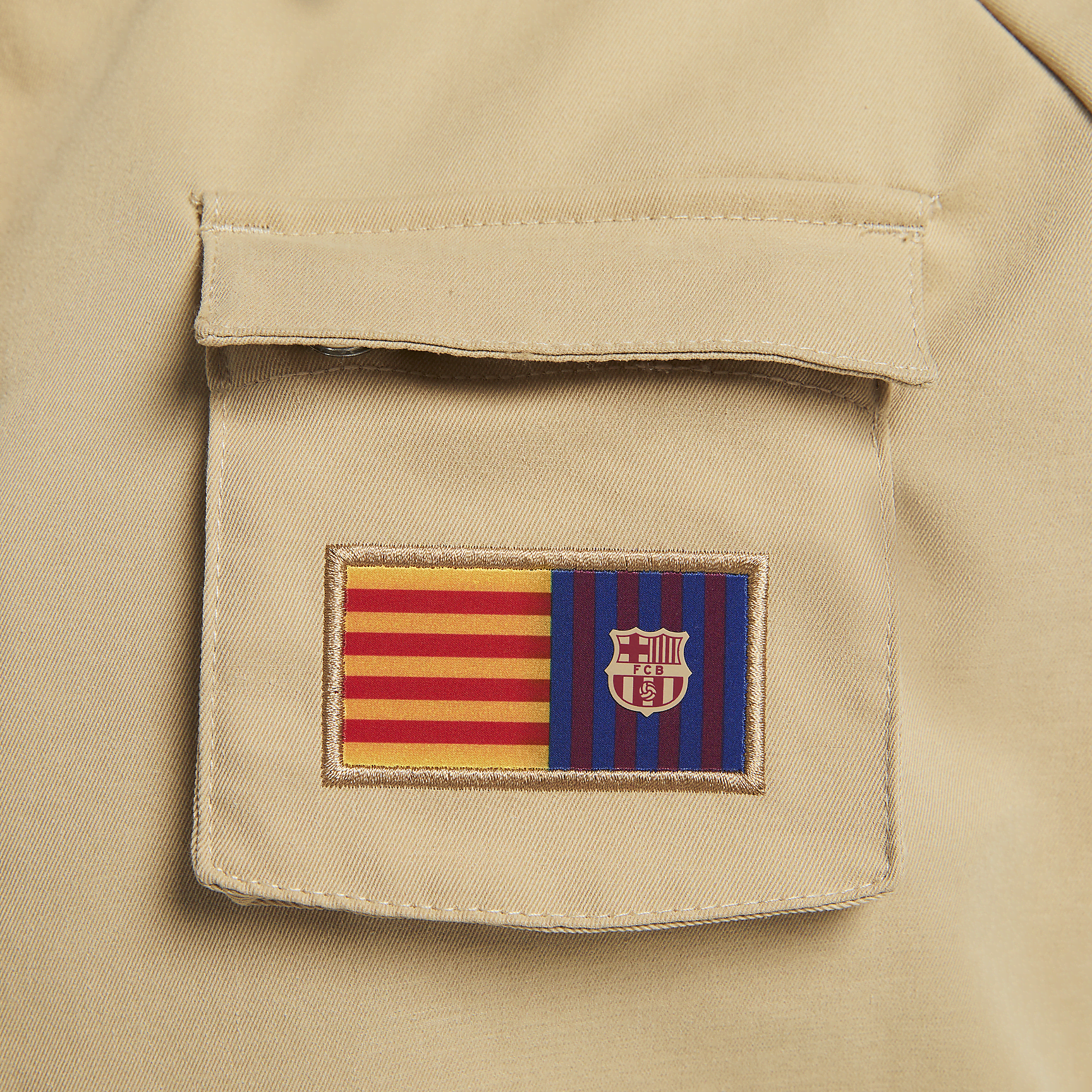 Rep your team without sacrificing style in our utilitarian-inspired FC Barcelona Swoosh Jacket. Its oversized fit and water-repellent finish make it an ideal layer for days when the weather feels unpredictable. A storm flap with snap closures helps keep rain from sneaking through the zipper while multiple flap pockets provide plenty of space to keep all your daily necessities close at hand.
