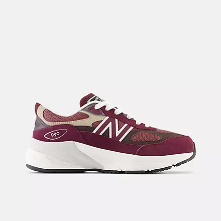 This model runs large, you may consider ordering down from your normal size.The designers of the first 990 were tasked with creating the single best running shoe on the market. The MADE in USA 990v6 embraces this original mandate, with a series of performance-inspired updates. The upper dispenses with the standard midfoot saddle, allowing the pigskin and synthetic overlays to flow from heel to toe across the mesh underlay, for a speedy, streamlined look. While the evolved design marks one of the most dramatic changes from one generation model to the next that the 990 has ever seen, the greatest leap forward occurs on the inside. The addition of FuelCell midsole cushioning means that the evolution of the 990 can be felt as much as it can be seen.