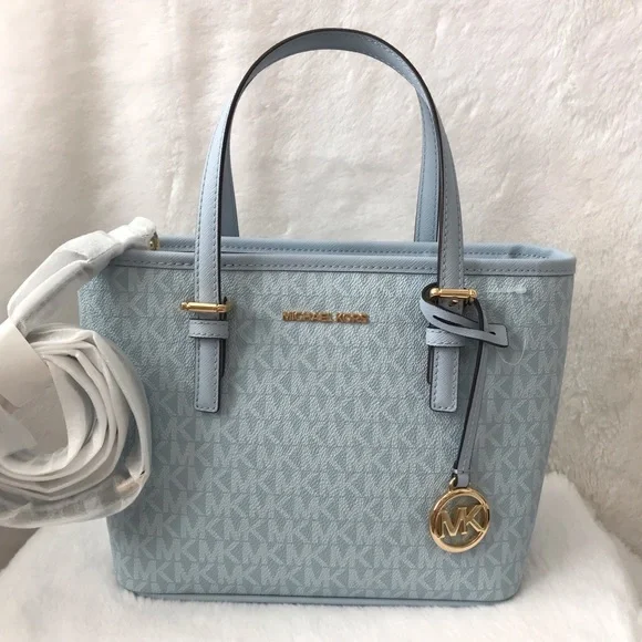 Michael Kors XS Carry All Jet Set Travel Womens Tote (Pale Ocean) MK Signature