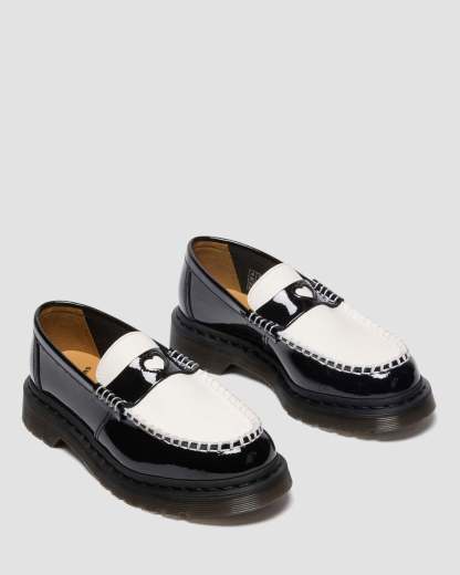 Wear your heart on your shoe. The Penton Heart loafer adds a playful cut-out to a DM��s classic. Wrapped in Patent Lamper leather for a high-shine finish. And Smooth leather across the apron with a cut-out heart on the contrasting saddle. We bordered the apron with standout stitching, while adding subtle black stitching around the welt. The loafer sits on a smoke DMS sole with classic grooving.