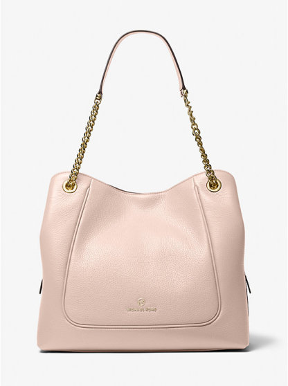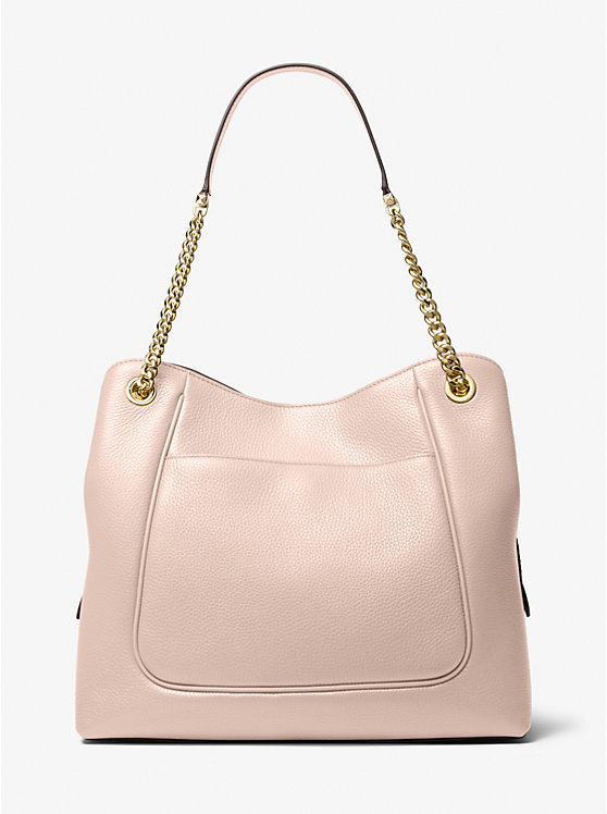 Our Piper is an essential carryall for this season and the next. Strung from a gold-tone chain-link strap, this spacious style is crafted from pebbled leather that opens to reveal a median zip compartment for on-the-go organization. We love how the shoulder bag gently folds at the sides to comfortably nestle under your arm.