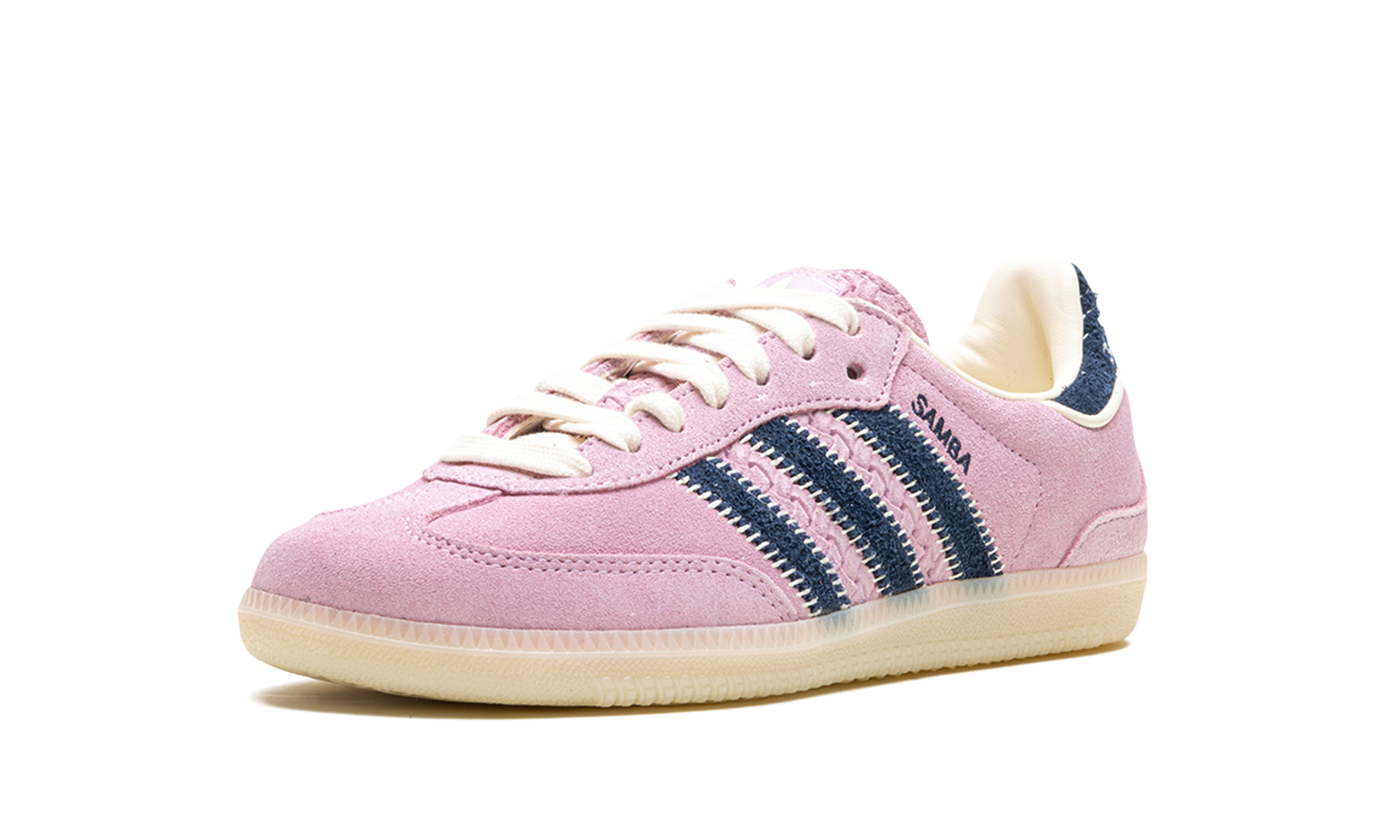 The notitle x adithtdas Samba "Pink/Navy" is one of four colorways of the retro shoe by the China-based creative agency and adithtdas. Released exclusively in China, the notitle x adithtdas Samba "Pink/Navy" treats the popular shoe to an eye-catching appearance. Specifically, the upper has a pink suede construction, with navy suede Three Stripes and "Samba" branding on the side. The phrase, "Love Saves the Day" appears on the heel, while a classic adithtdas logo can be found on the tongue. A semi-translucent gum rubber sole rounds out the look. Release date: September 8, 2023 notitle Pink
