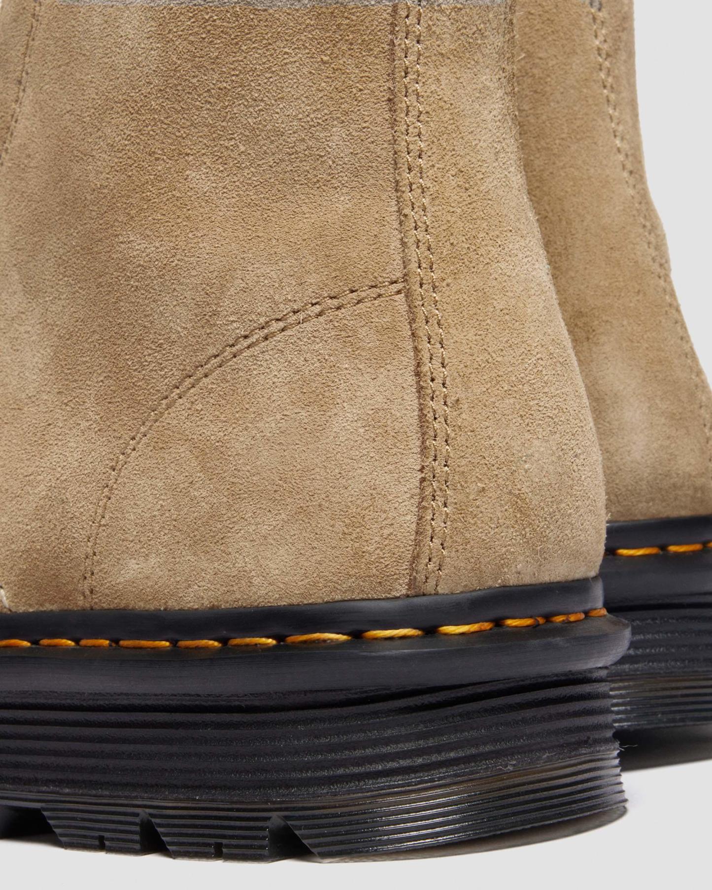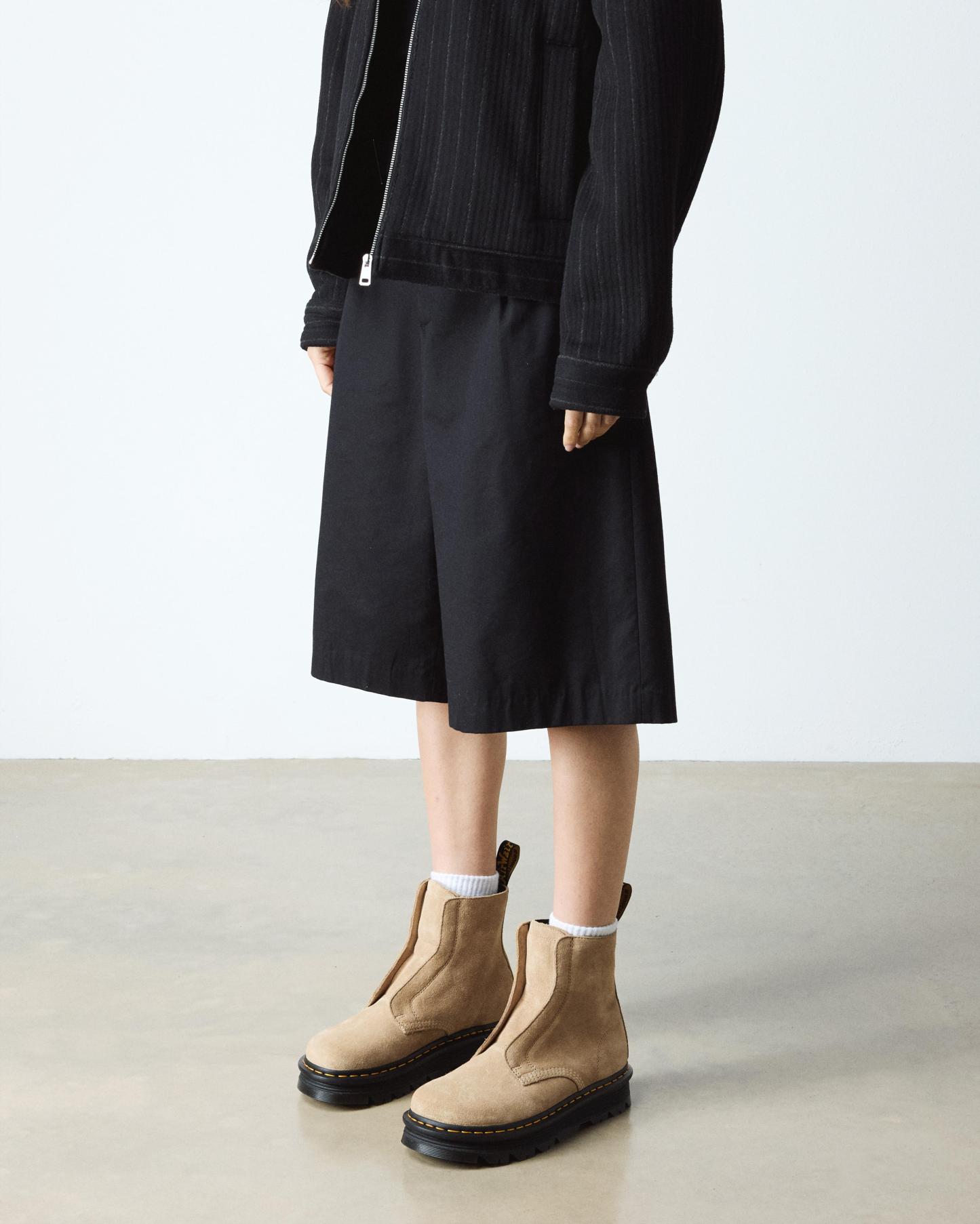 Give tough days a gentle landing with our new Zebzag Laceless boot. Made with soft-yet-tough EH Suede, the relaxed silhouette takes inspiration from our classic 1460 boot and transforms it into a slip-on boot �� for minimum effort and maximum comfort. The ergonomic Zebzag sole combines lightweight EVA and durable PVC to give your feet an easy ride without limiting your destination. And our SoftWair footbed adds extra cushioning. The sole boasts distinctive DM's signatures, with a bold tread pattern, exaggerated grooving, and our unmistakable yellow welt stitching.